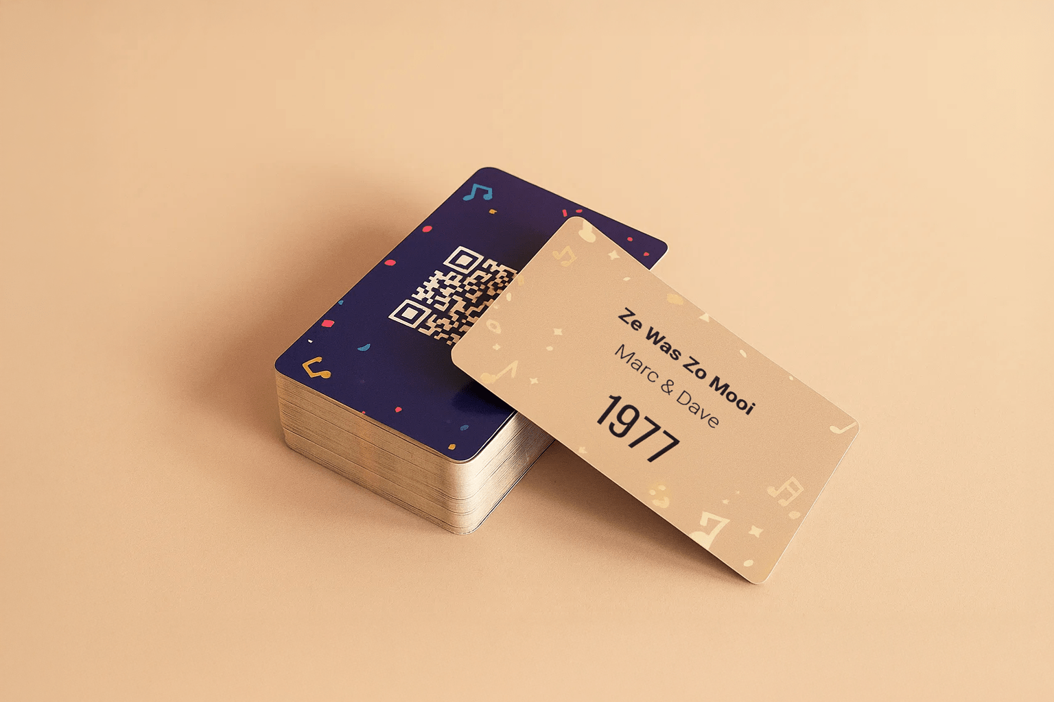 - Scannen & raden: scan een kaartje; de app speelt een fragment af. Raad titel, artiest en jaartal, controleer het antwoord en scoor punten.
