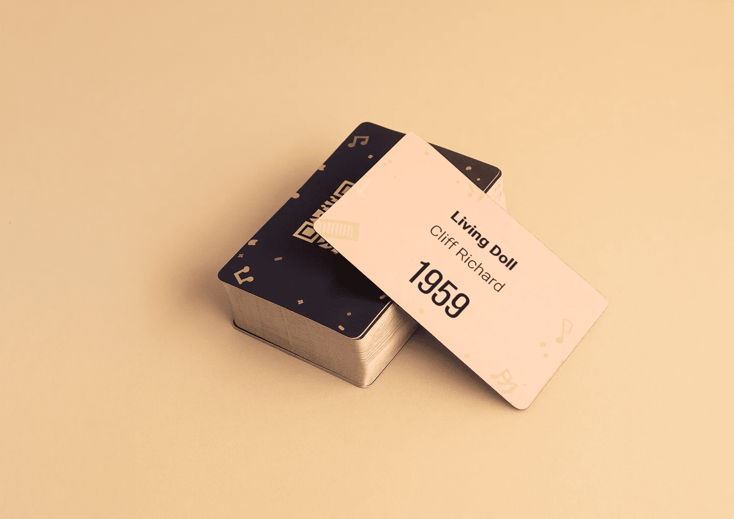 Stap in de wereld van muziek, herinneringen en gezelligheid met QR Music Cards. Deze muziekquiz maakt van elke gelegenheid een muzikaal feestje. Kies uit 17 edities met 2000+ hits, van klassiekers tot knallers van nu. In deze Fifties en Sixties-editie speel je met nummers uit 1950–1969 en artiesten zoals Jimi Hendrix, The Who, Bing Crosby, The Beach Boys, Boudewijn de Groot.